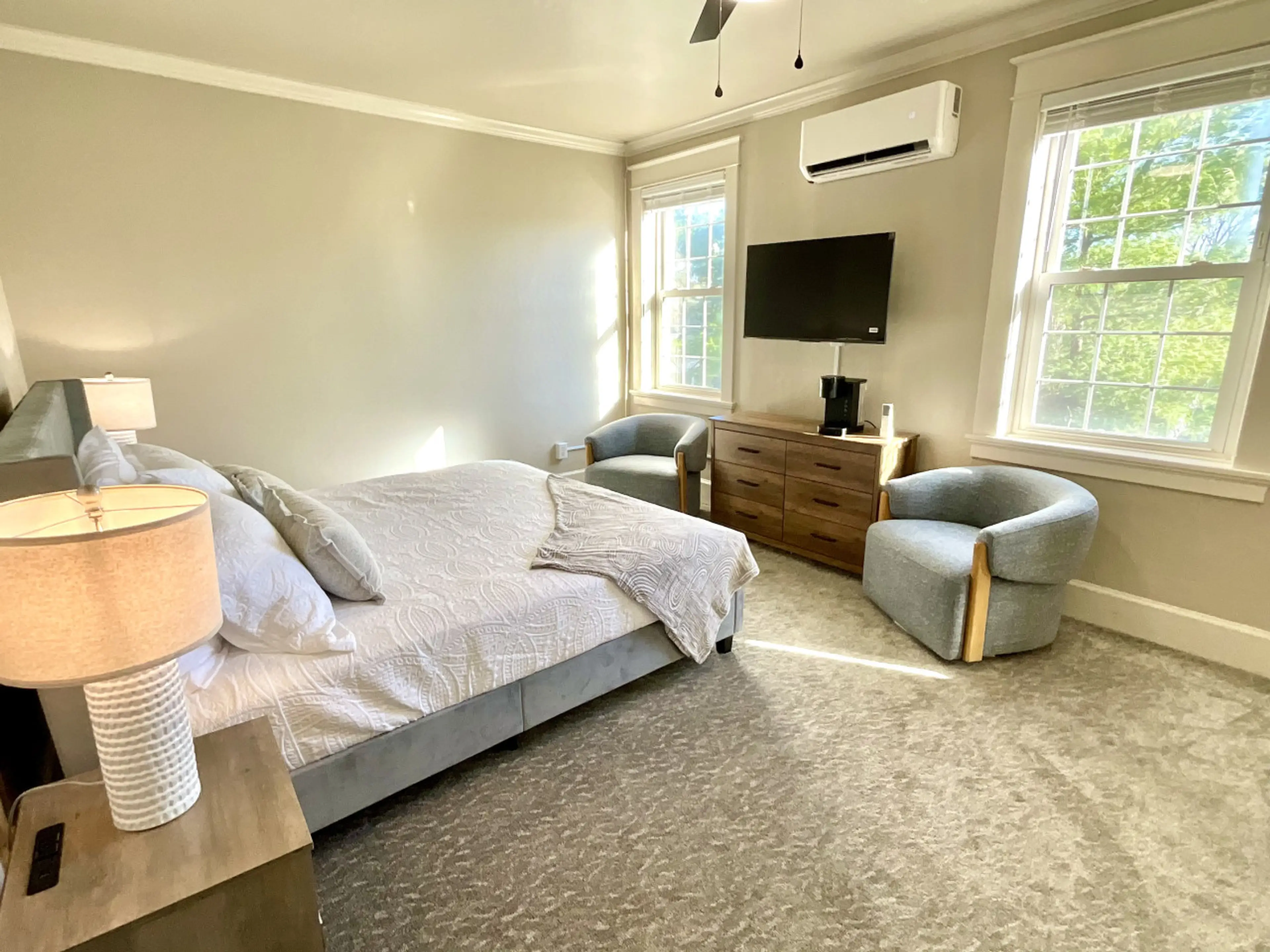 Experience a unique blend of classic refinement and modern comfort at the historic Woodford Inn, nestled in the heart of charming downtown Versailles, KY. Immerse yourself in the rich heritage that radiates from every corner of our elegantly adorned room, seamlessly intertwining pieces of history wi...