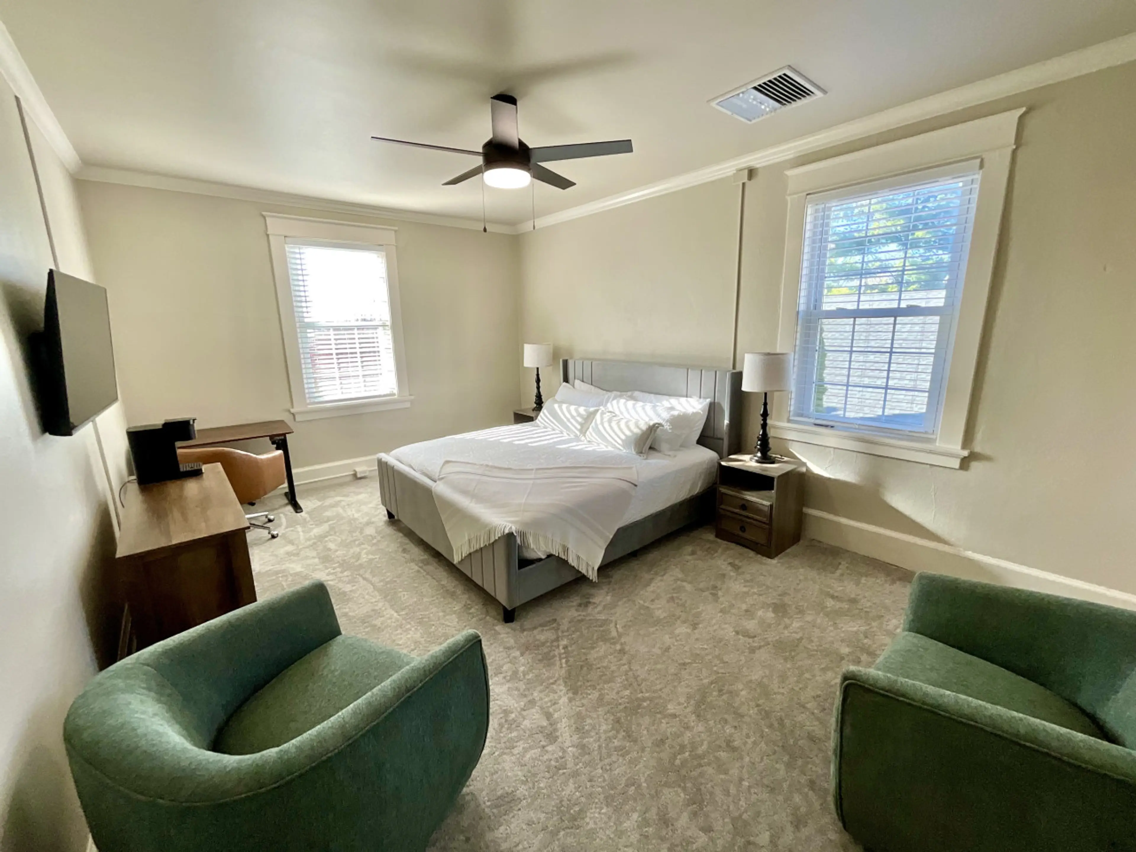 Experience a unique blend of classic refinement and modern comfort at the historic Woodford Inn, nestled in the heart of charming downtown Versailles, KY. Immerse yourself in the rich heritage that radiates from every corner of our elegantly adorned room, seamlessly intertwining pieces of history wi...